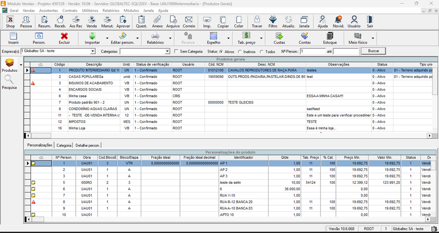 Ativo – mostra somente produtos ativos.