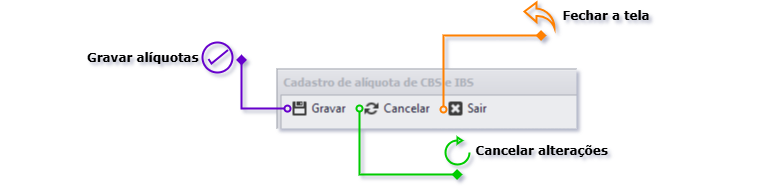 • Gravar: Permite salvar as alterações realizadas no cadastro de alíquotas.