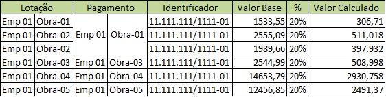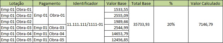 - Todos os encargos são calculados agrupados por empresa/obra de lotação e empresa/obra de pagamento, no entanto guia será gerada tendo como agrupamento empresa/identificador conforme realizado na SEFIP, desta forma pode ocorrer de gerar diferença de arredondamento, tanto para INSS quando para FGTS.