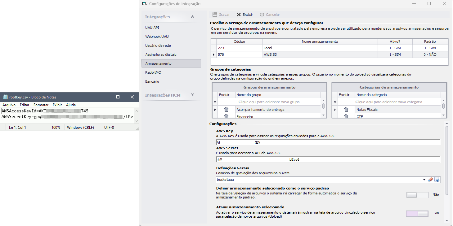Com estas configurações gravadas, agora é possível vincular arquivos na nuvem AWS S3!