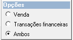 Pode realizar o filtro por venda, transação financeira ou ambos.