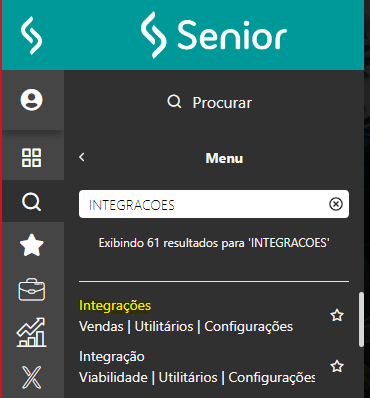 • Acesse Gestão de Construção > Todos os Módulos > Utilitários > Configurações de Integração > Plataforma Senior.
